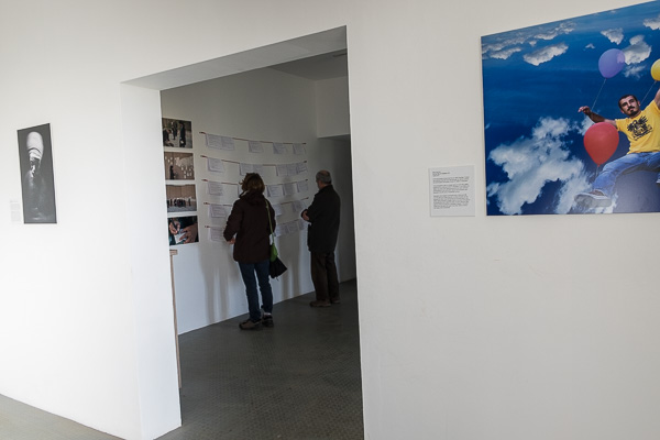 Turkish artist, curator and academic Baris Seyitvan’s digital print Isimsiz, translated as ‘Anonymous’, shows the artist suspended in sky, held up by five helium balloons. A photograph of the artist’s installation Every Stone Wants to be Free, a helium balloon tied to a brick, also features in the exhibition.